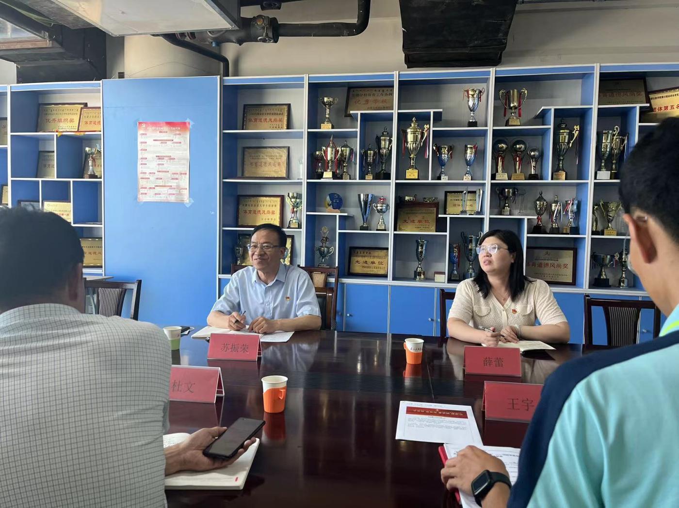 为进一步推动学习贯彻习近平新时代中国特色社会主义思想主题教育走深走实,6月20日上午,体育教学部直属党支部开展中心组(扩大)学习交流研讨会。支部委员、处级干部参加了会议。学校主题教育督促指导第一工作小组组长苏振荣和副组长薛蕾到会指导。会议由支部书记杜文主持。