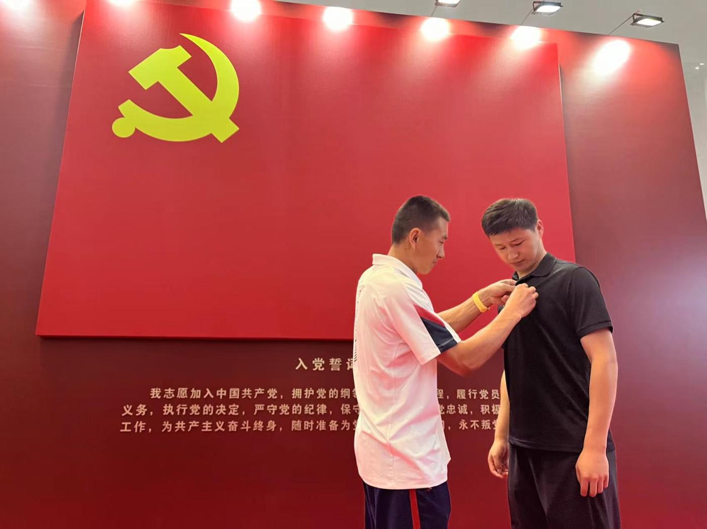 活动首先,为新发展预备党员举行了入党宣誓仪式。预备党员宣誓,老党员重温入党誓词,佩戴党徽,面向党旗,在书记杜文的带领下,举起右拳,郑重宣誓,铿锵的誓词抒发着对党的忠诚,表达了为党的事业奋斗终身的决心。