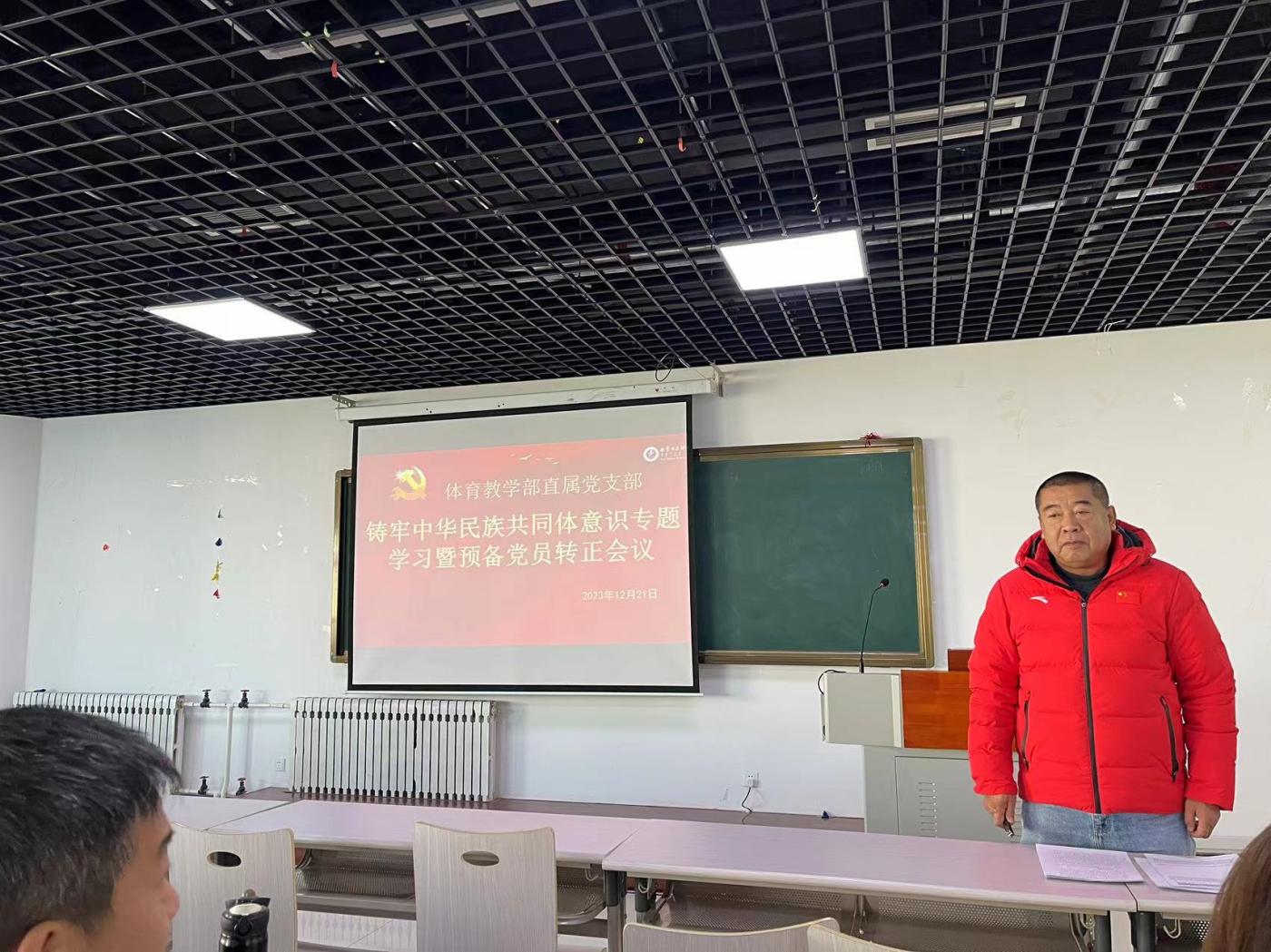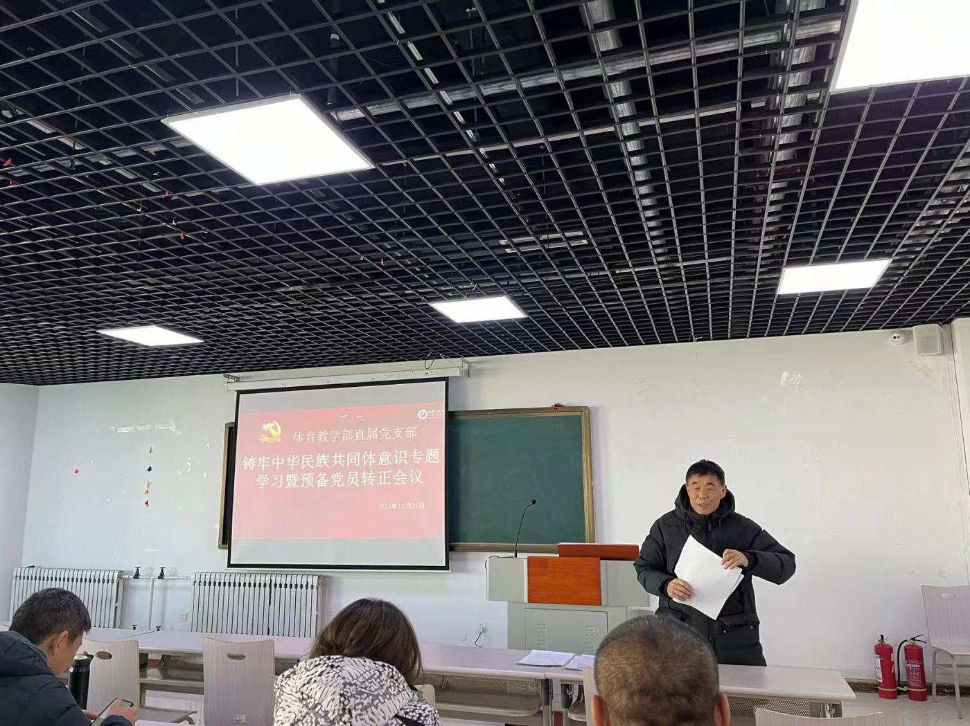 体育教学部直属党支部召开全面铸牢中华民族共同体意识专题学习暨预备党员转正会议