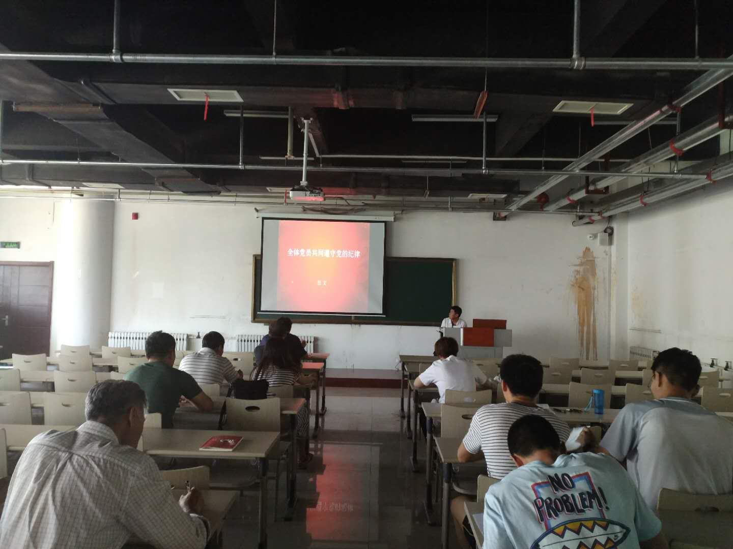 为提升体育教学部直属支部党员干部守纪律、讲规矩的意识,2018年6月19日,支部组织委员杜文以“全体党员共同遵守党员的纪律”为主题,为支部党员上了一堂生动的党课。