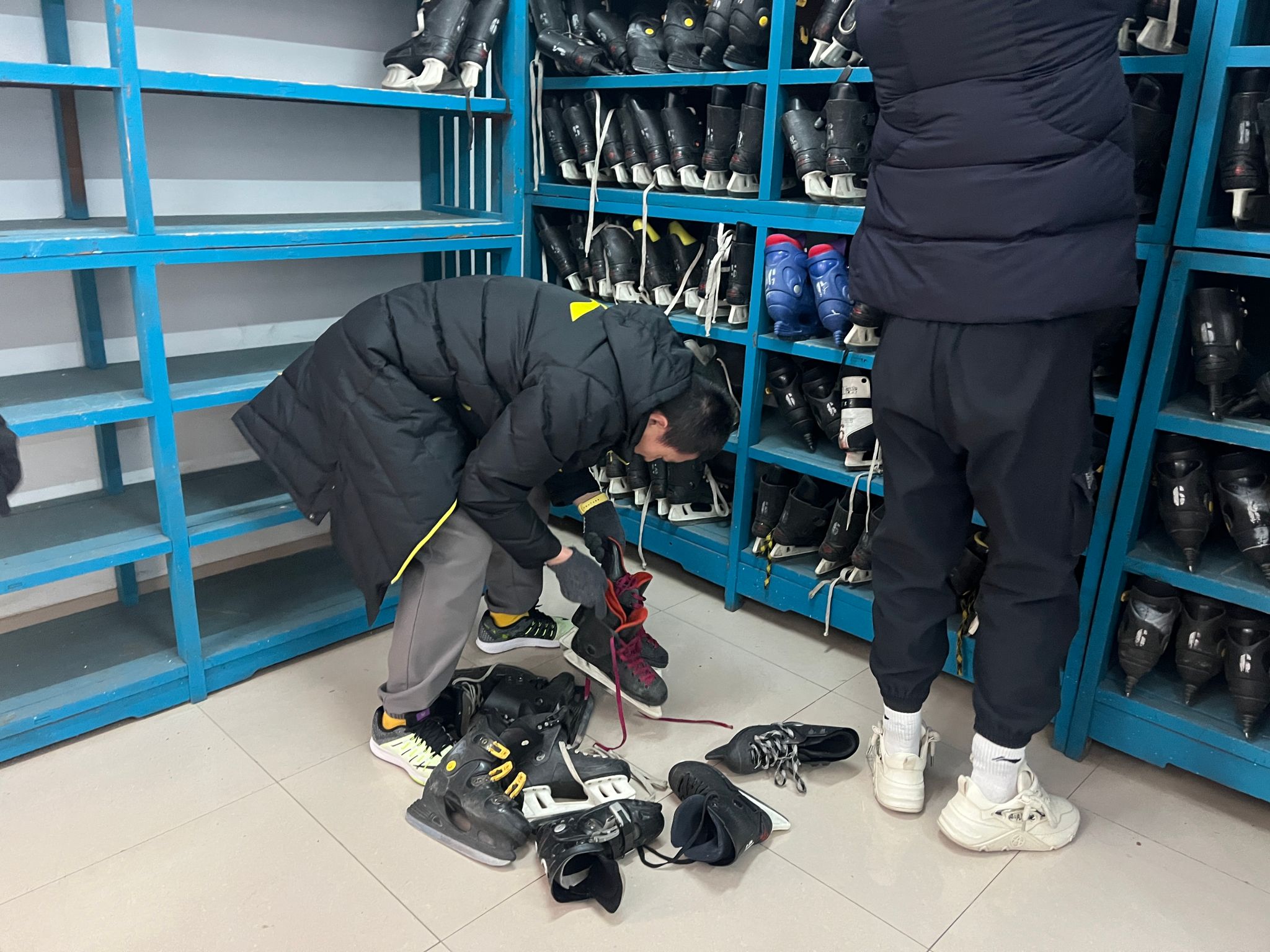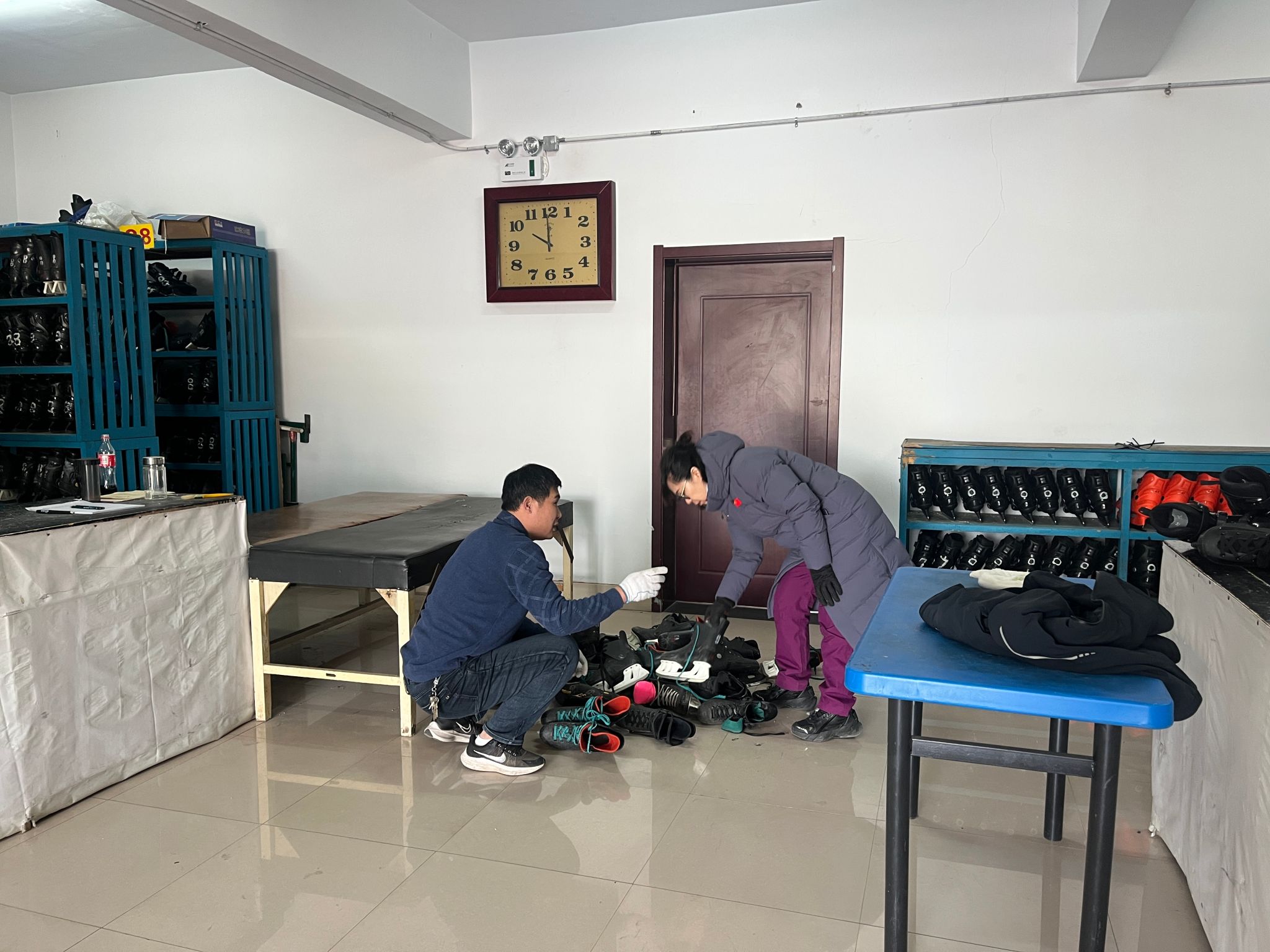 活动中,大家认真投入冰鞋库房鞋架清理工作中。他们分工明确、紧密配合,充分发扬不怕苦、不怕累的精神,认真细致地对冰鞋库房鞋架逐一清理。经过大家的辛勤劳动,冰鞋库房鞋架焕然一新,干净整洁。