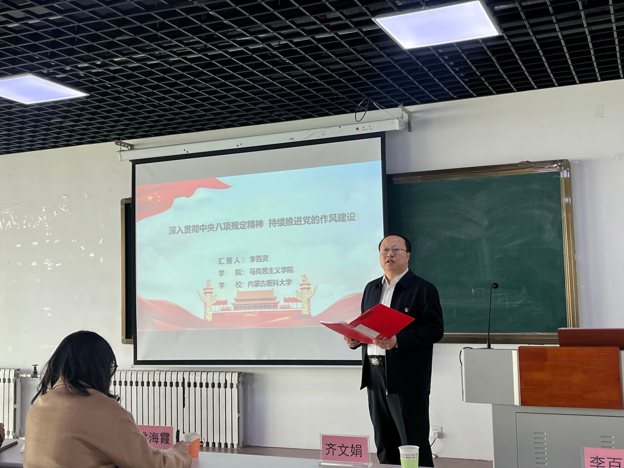28日下午,由马克思主义学院李百灵老师以“深入贯彻中央八项规定精神 持续推进党的作风建设”为题,从“中央八项规定精神学习教育的意义”“中央八项规定的内容”“落实中央八项规定精神的实践要求”几个方面作专题辅导。