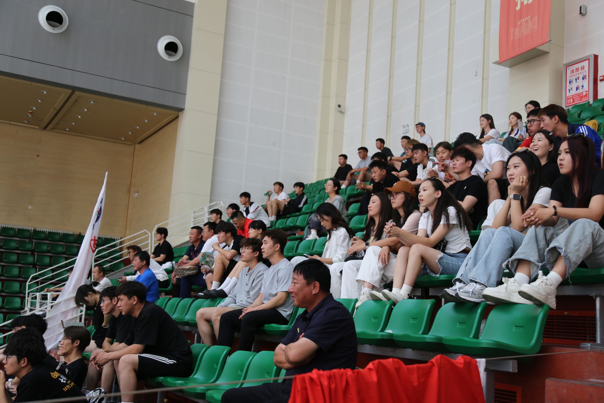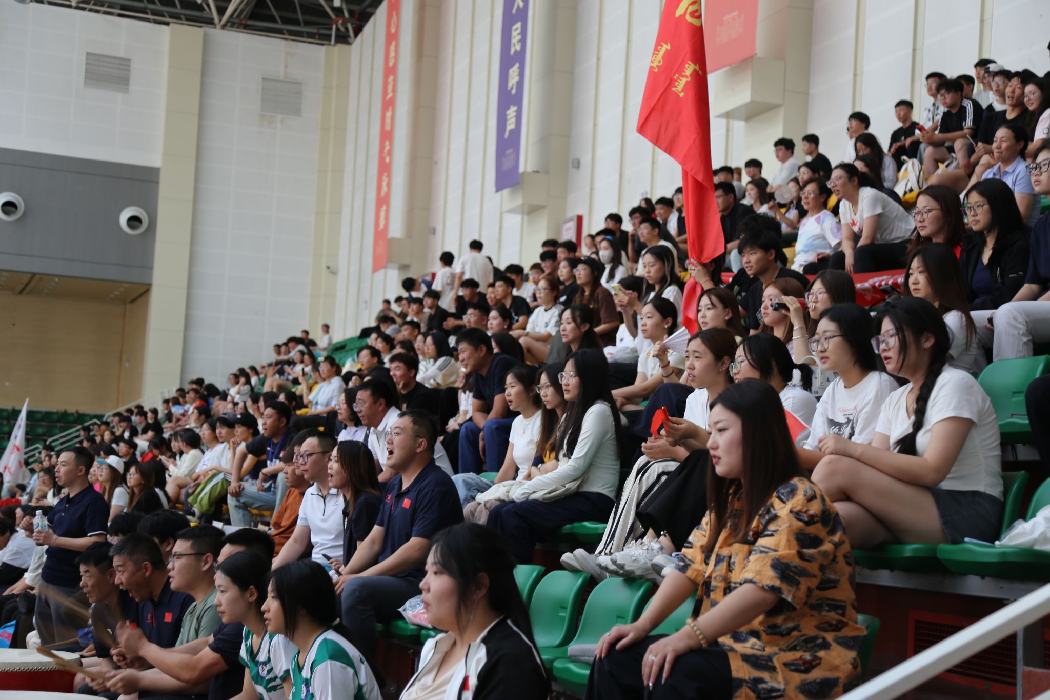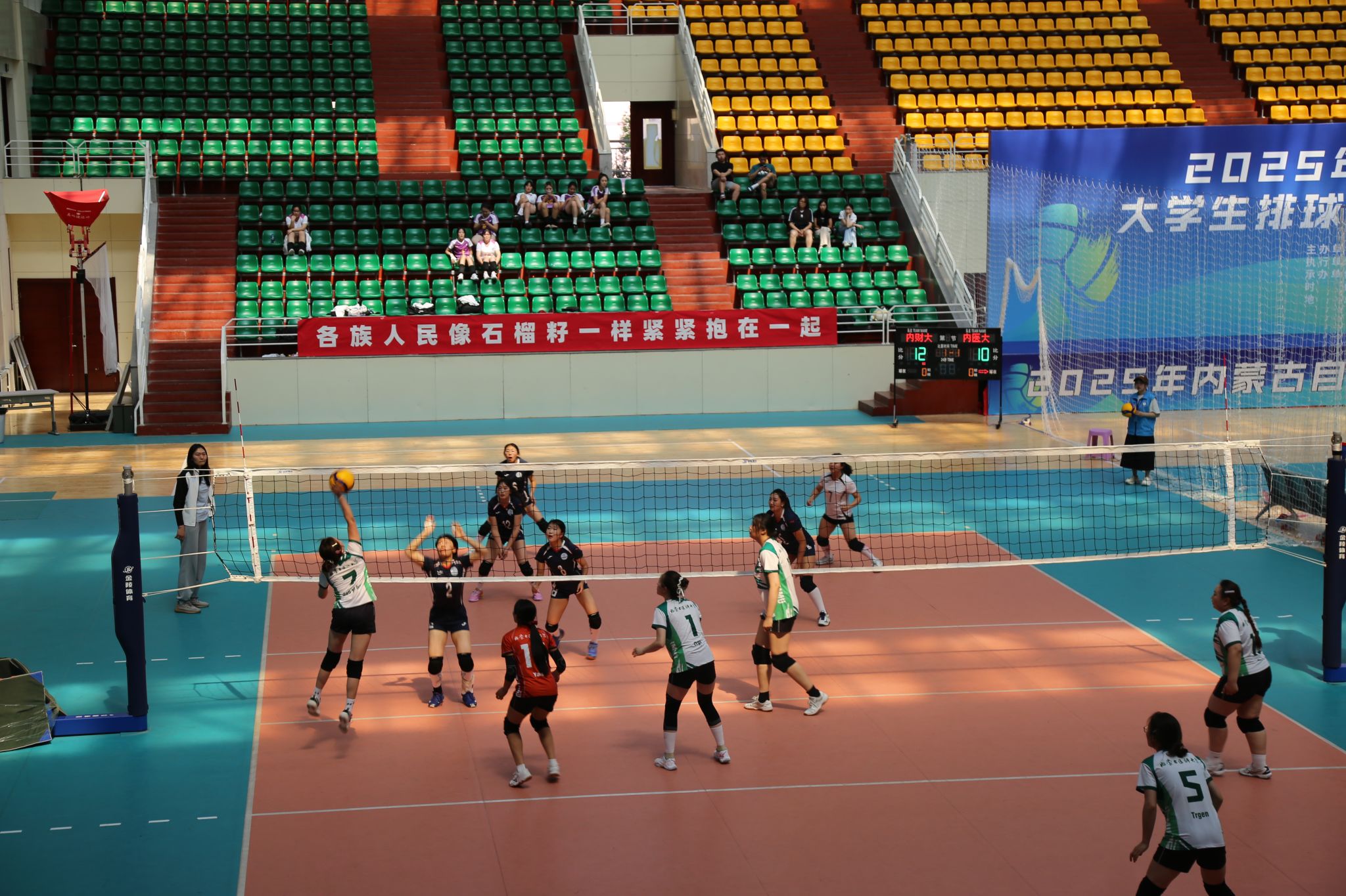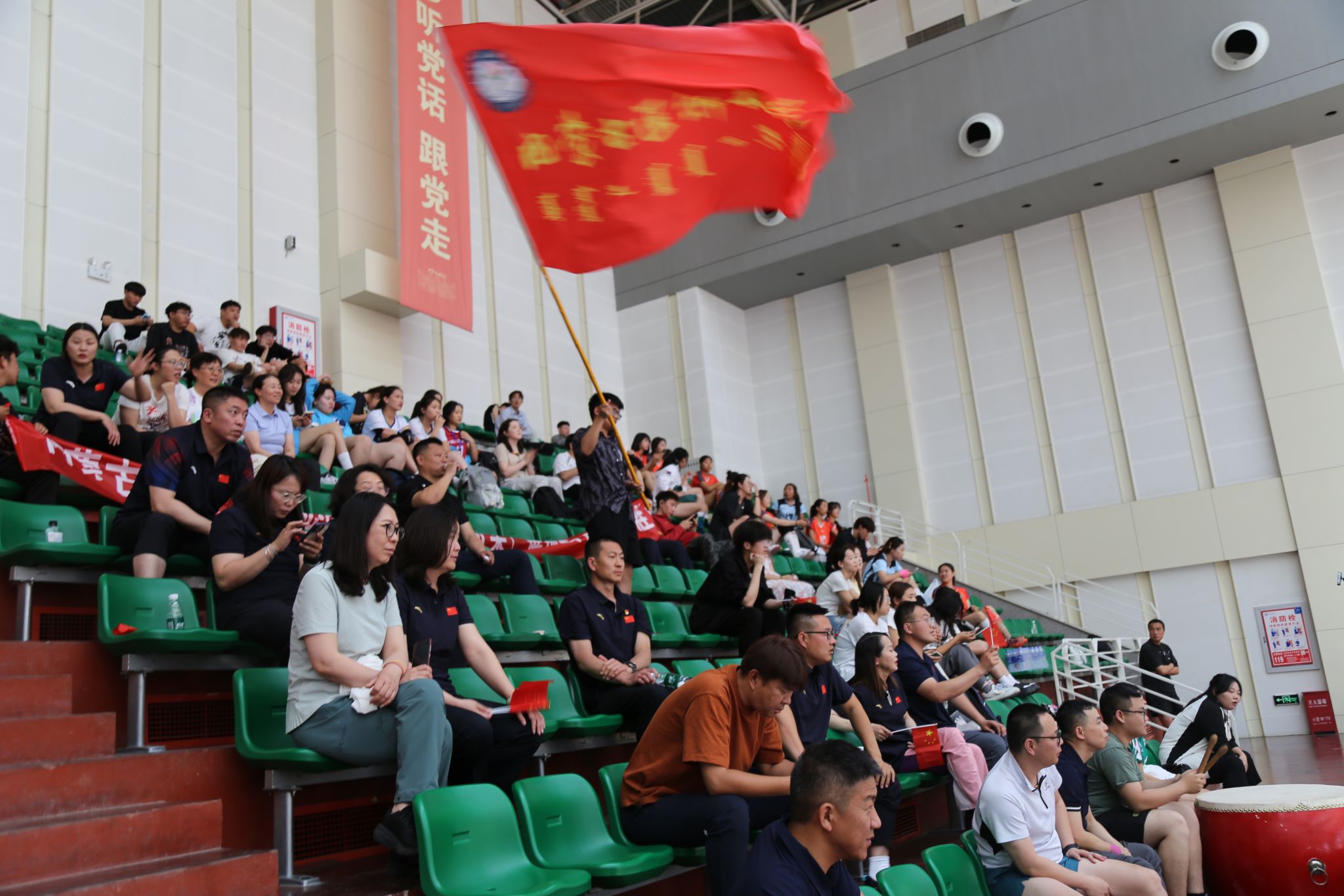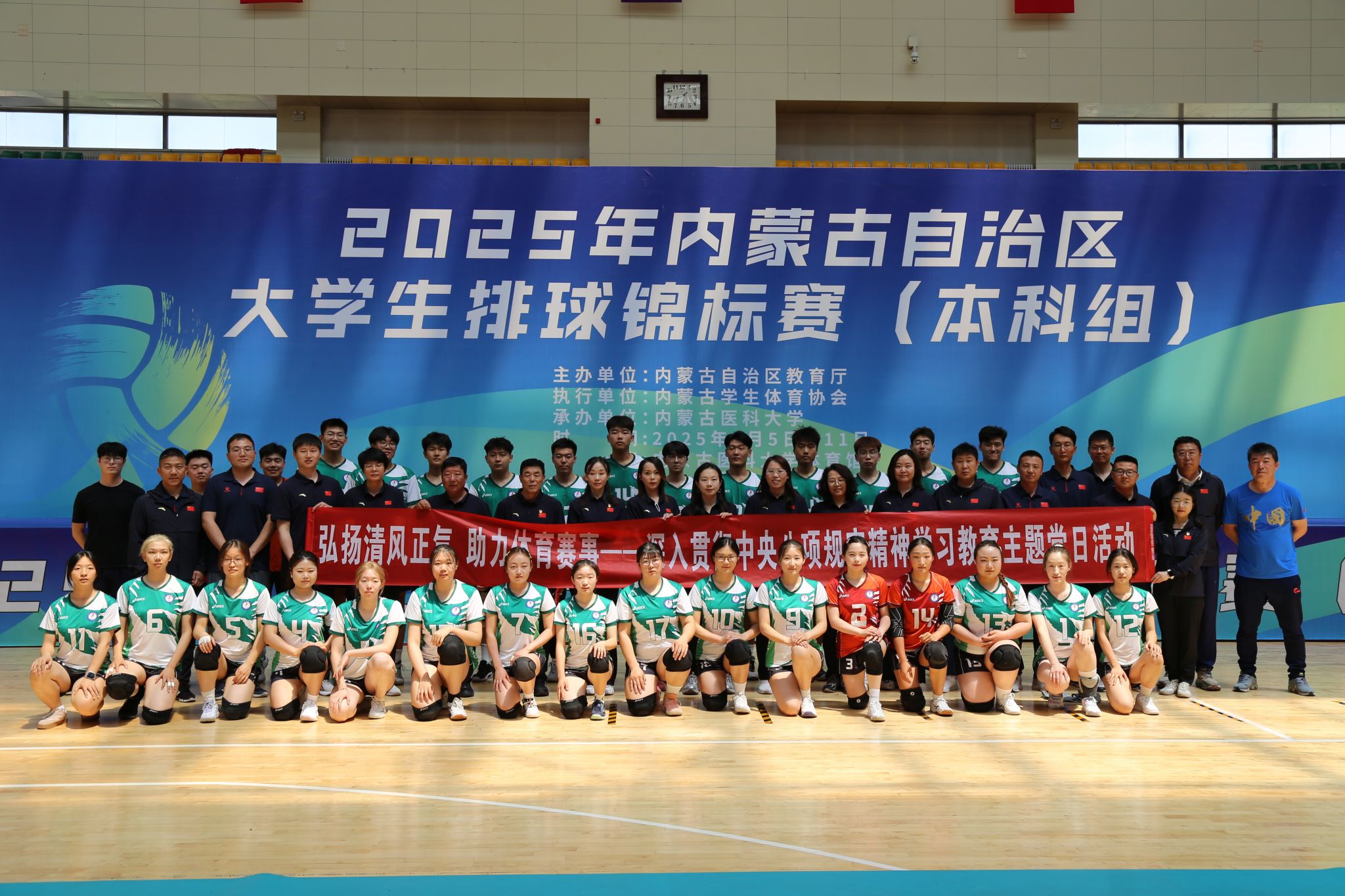 为深入贯彻中央八项规定精神学习教育,切实将理论学习成果转化为服务师生的生动实践,充分发挥党组织战斗堡垒作用和党员先锋模范作用,体育教学部直属党支部于6月10日开展了“弘扬清风正气 助力体育赛事”——深入贯彻中央八项规定精神学习教育主题党日活动,组织全体党员、教职工、学生为正在进行的2025年内蒙古自治区大学生排球锦标赛加油助威。