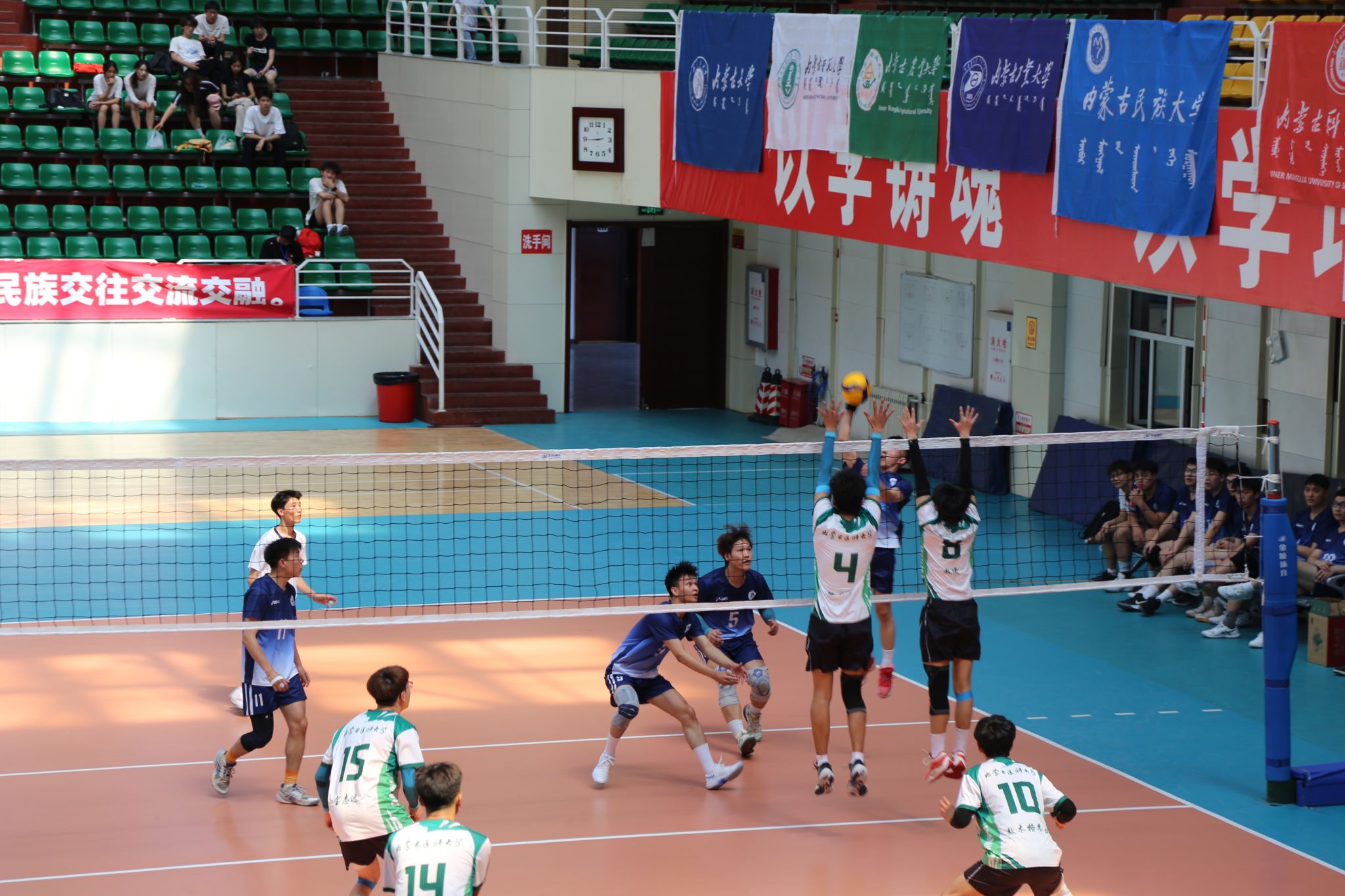 我校男子、女子排球队队员们在赛场上团队协作,充分诠释了坚韧不拔、勇于拼搏的体育精神,也为现场师生带来了一堂生动的实践课。