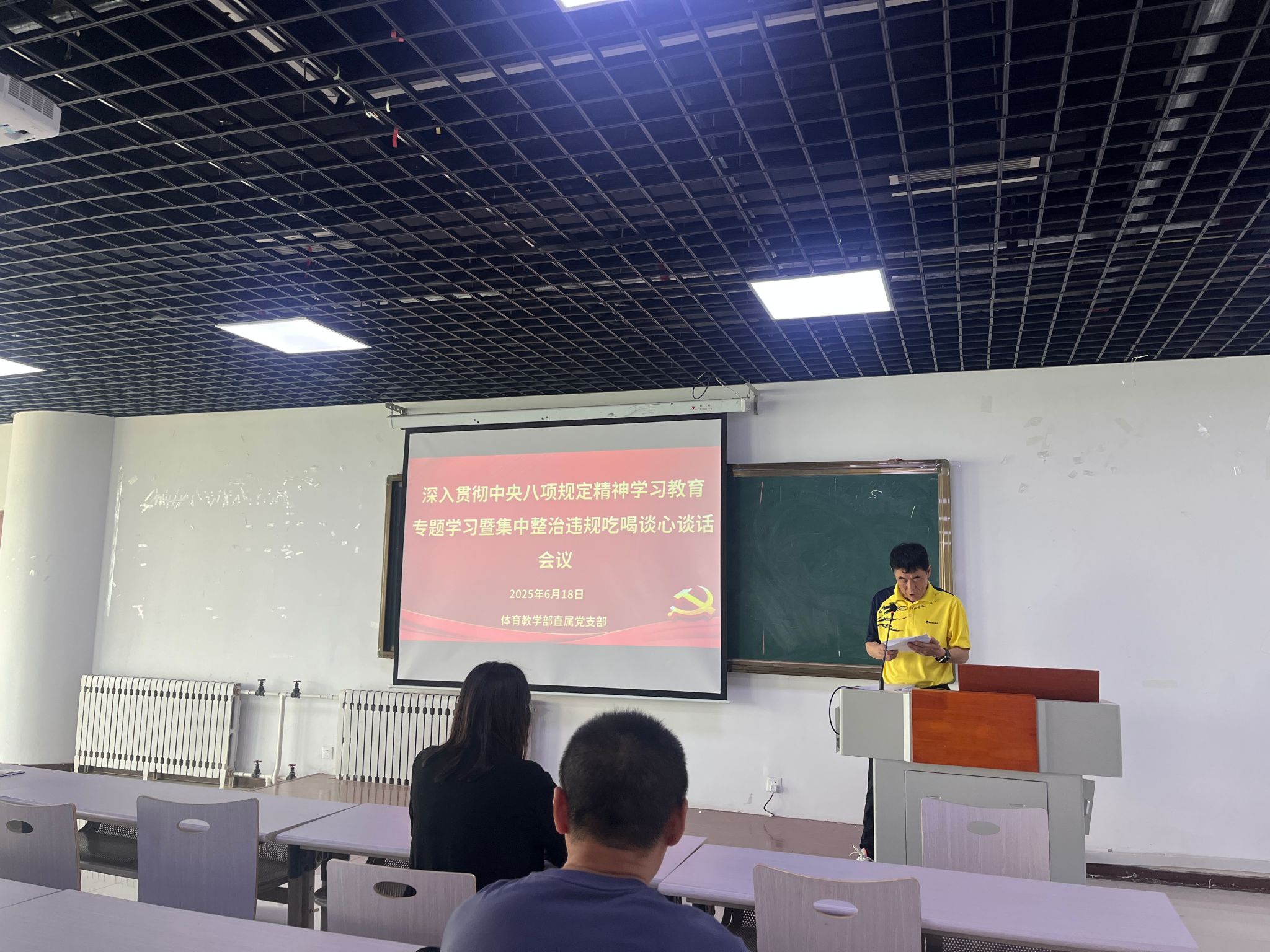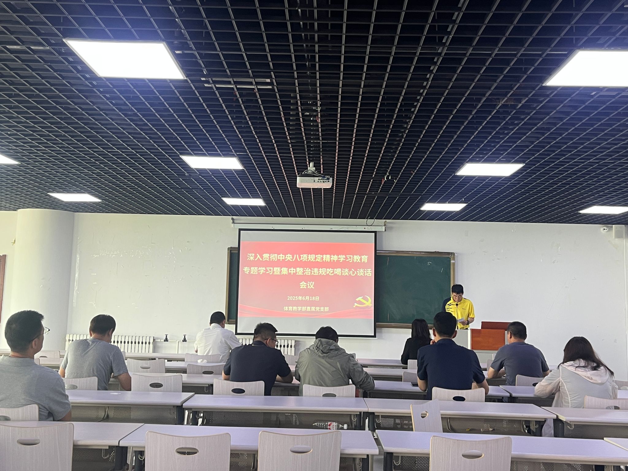 体育教学部直属党支部召开深入贯彻中央八项规定精神学习教育专题学习暨集中整治违规吃喝集体谈心谈话会